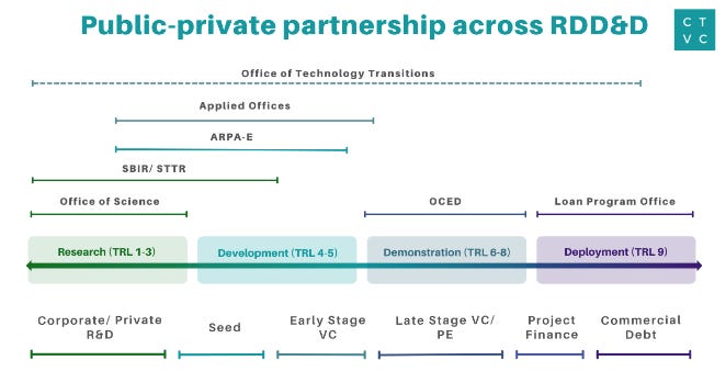 Acceptance into ARPA-E’s DAYS program for long duration storage was a key development for Antora and served to fill exactly the role that government should fill - bridging the early gap between science and engineering where the technical risks are still too high for private investors. [For more on how the DoE is supporting the scale up of climate tech, I’d recommend checking out CTVC’s excellent Founder’s Guide to the DoE.]